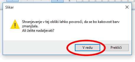 Potem dobimo še opozorilo, da bo nova slika slabše kakovosti. Potrdimo V redu in že imamo sliko GIF.