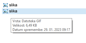 Če z miško zapeljemo na sliko (ne klikamo) in malo počakamo, da se izpiše tudi vrsta datoteke.