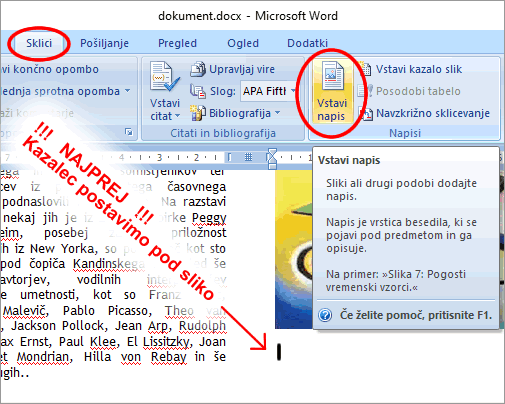 naprimer napisu: Slika1 dopišemo še: Kandinsky Šopek