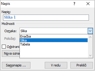 - V oknu Napis izberemo oznaka: Slika. Če