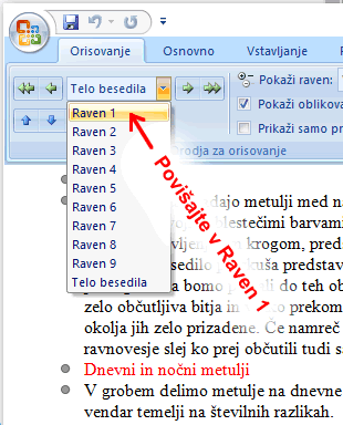 - Označimo prvi naslov poglavaja (rdeče besedilo)